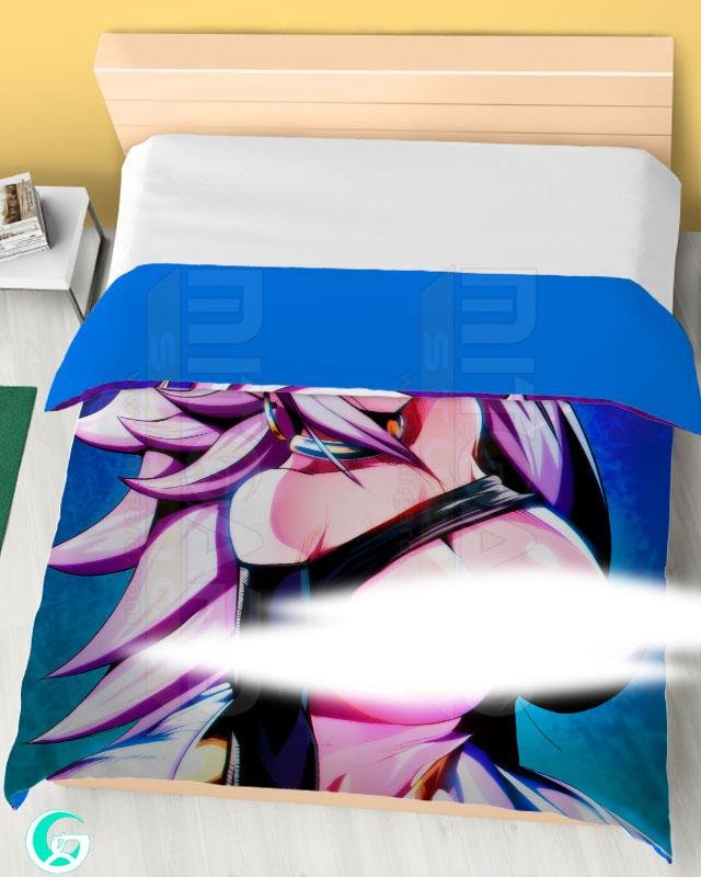 Now the strong Android 21 Majin come for confort you by the final day of work or studying. She will give you a happy dreams with the nice texture and excelent detail of the sheets and Duvet covers available at our store. You can choose the size that can fit to your bed, that size is the area of the printed design too.